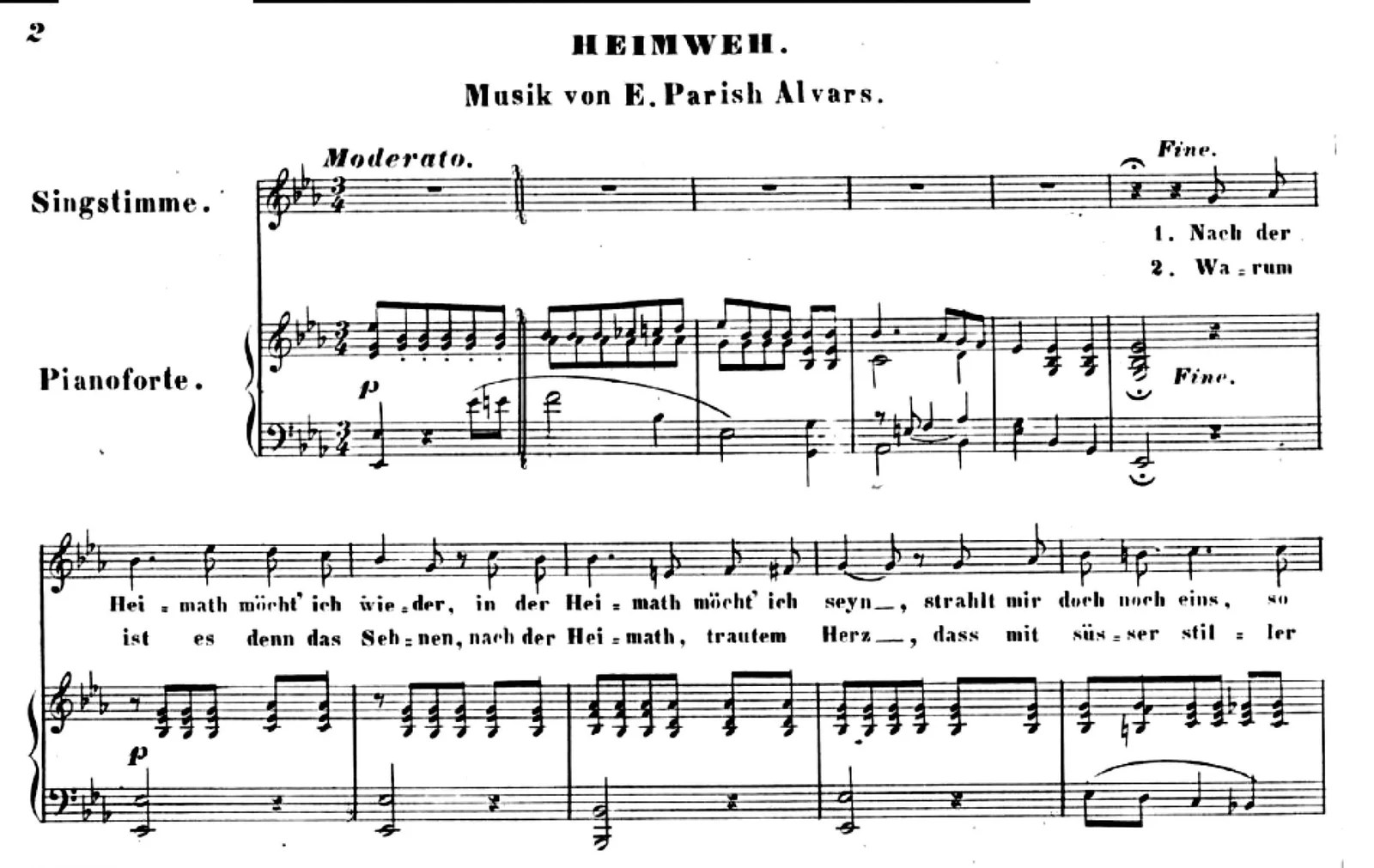 Parish Alvars: Heimweh, Romance for Voice and Piano / Harp, op. 55
