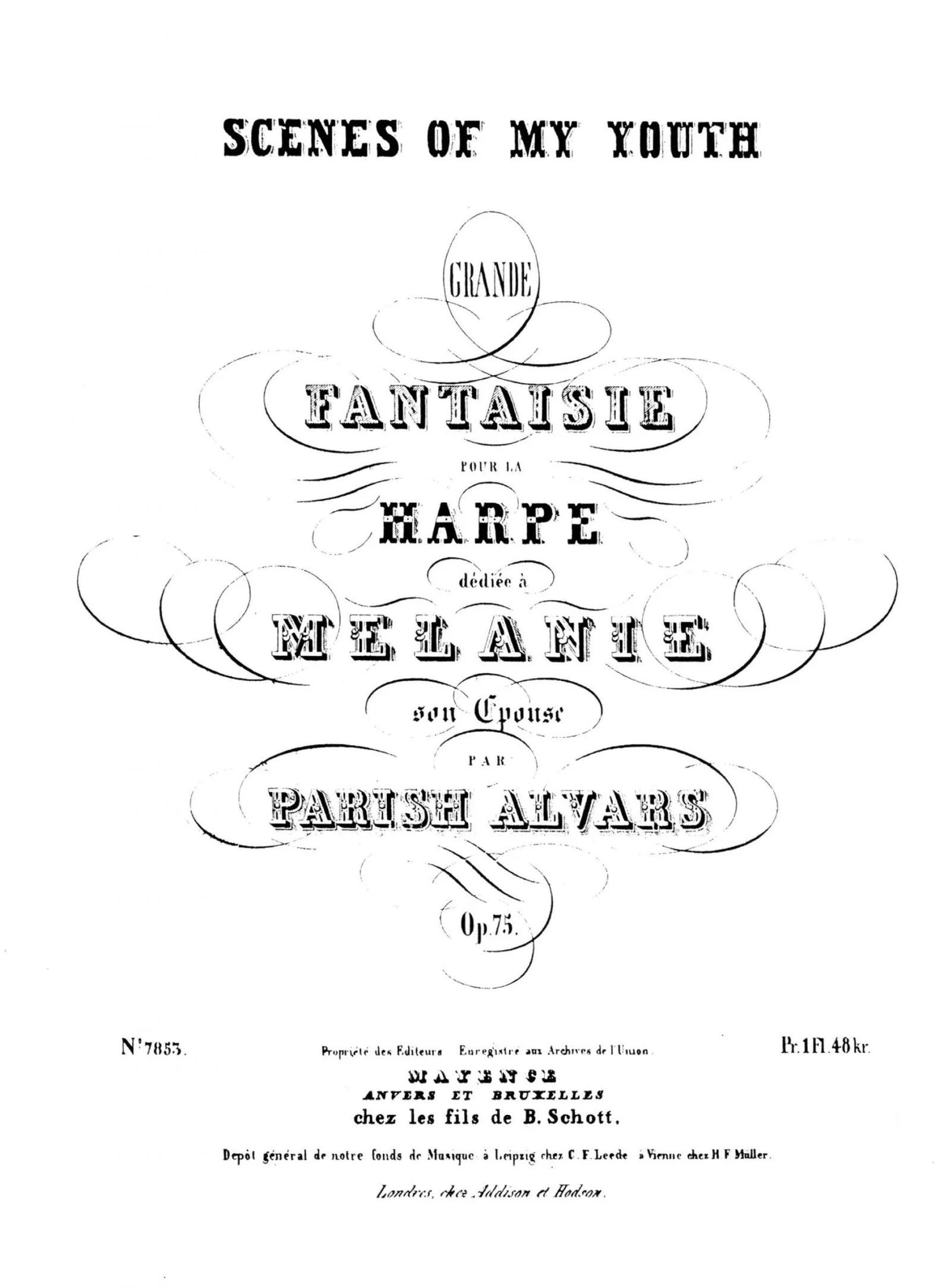 “Scenes of my Youth or The pleasures and sorrows of an Artist expressed in a Series of Caracteristical ROMANCES for the harp and dedicated to the Lady of his Heart by Parish Alvars”